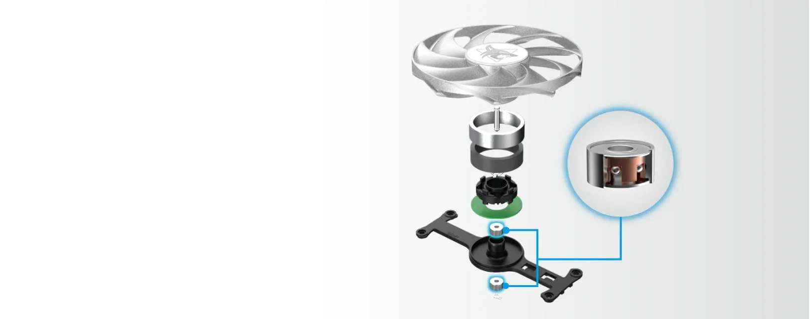 Çift bilyalı rulmanlar dönme sürtünmesini azaltarak mükemmel ısı dağılımı sağlar ve fanların beklenen ömrünü etkili bir şekilde iki katına çıkarır.